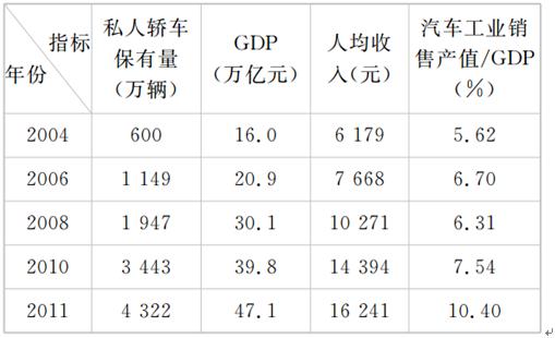 材料一 2004~2011年我国汽车消费及相关指标