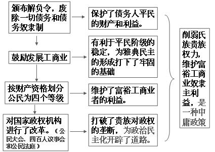 积极: ①经济:部分地减轻了平民负担,平民的人身自由得到法律保障,为雅典民主的形成打下了牢固的阶级基础。鼓励发展工商业有利于提高雅典在对外贸易中的竞争力。