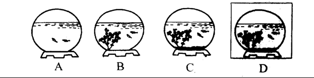 (3)如果C 和D构成对照试验,则变量是 。 D装置中,小鱼的存活时间比A装置中的存活时间短,最可能的原因是