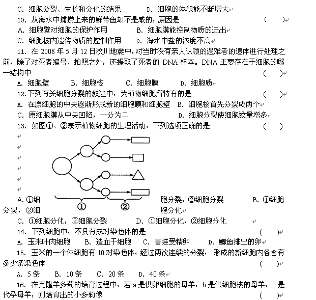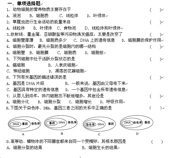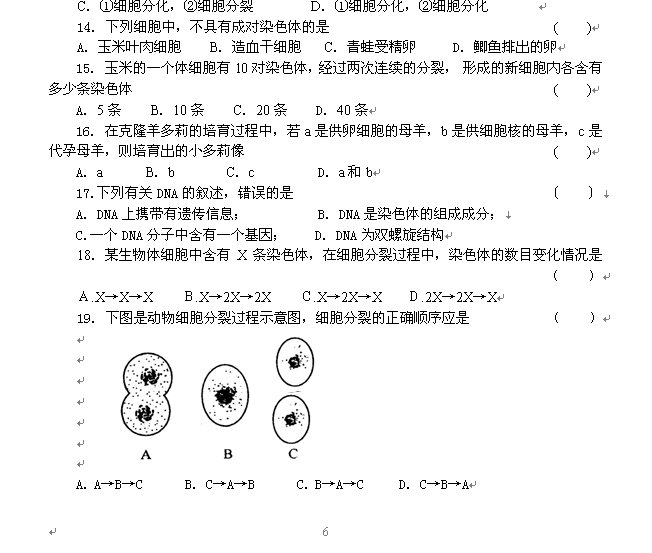 ——>>生物——>>初中同步(湖南页面)——>>染色体的分裂站