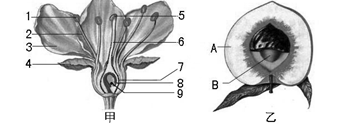 23.下图甲是桃花的形态结构示意,下图乙是桃的果结构示意,请分析回答: