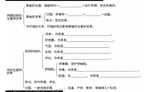 【突破策略】昆虫、两栖动物、鸟类的生殖和发育方式与其生活环境相适应。如昆虫的变态发育,使昆虫一生中不同发育阶段,适应不同的食物和生活环境。两栖动物的受精过程和幼体发育的特征,只适于在有水环境中生活。鸟卵结构复杂,胚胎的发育受到良好保护。