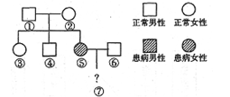 (2)上图中⑤号为女性白化病患者,可推知①、②个体的基因组成分别为_________、_________,④号个体的基因组成是__________________。