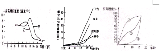 1.青春期是人一生中身心发展的重要时期,各器官都发生了明显的变化请据图回答: