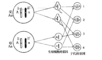 【例题3】(2006·山东泰安)人的每个体细胞内都含有23对染色体,控制着人的性状。下图是一对染色体(Ⅱ和Ⅱ′)上一对基因的遗传图解,图中A为决定卷舌的基因(显性),a为决定不卷舌的基因(隐性),请据图分析回答: