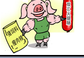 64.(6分)现在,健康饮食成为了人们生活中最重要的主题。前段在市场上发现有一种所谓的瘦肉型猪,这种猪几乎没有什么肥肉,人们戏称为“健美猪”。调查发现,河南多地生猪养殖中使用瘦肉精,养出的“健美猪”流入各地屠宰市场,也流入了双汇集团。如右图漫画所示。专家介绍,瘦肉精是一种不易分解的化学药品,在猪的代谢过程中可促进蛋白质的合成和脂肪的转化分解。其残留通过食物进入人体,致使人体渐渐地出现恶心、头晕、四肢无力、手颤等中毒症状。