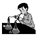 23.如右图,小明先松开右手,同时左手捏紧橡皮管吸气;后松开左手,同时用右手捏紧橡皮管吹气。结果发现乙瓶中的石灰水中明显变浑浊。由此,他可以得出的结论是 ( )