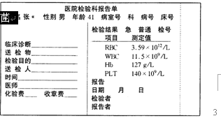 下表是某男子的血常规化验单: