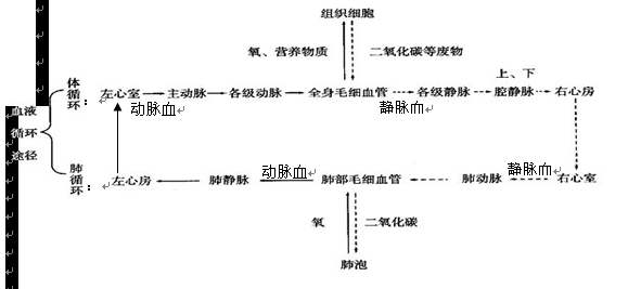 (5)血液成分发生变化的部位是 肺部毛细血管网 和 组织细胞出毛细血管网