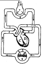 在人体内出现并经过的途径: 7→6→4→B→ D→3→5→8 。