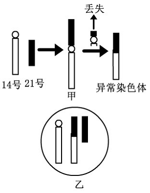 17.某男子表现型正常,但其一条14 号和一条21 号染色体相互连接形成一条异常染色体,如图甲。减数分裂时异常染色体的联会如图乙,配对的三条染色体中,任意配对的两条染色体分离时,另一条染色体随机移向细胞任一极。下列叙述正确的是