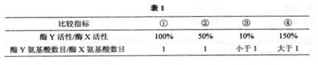22.编码酶X的基因中某个碱基被替换时,表达产物将变为酶Y。表l显示了与酶X相比,酶Y可能出现的四种状况,对这四种状况出现的原因判断正确的是C