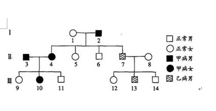 D.Ⅲ一13的致病基因来自于Ⅱ一2