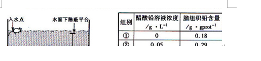 为探究铅中毒对大鼠学习记忆的影响,将大鼠分为四组,其中一组饮水,其余三组饮醋酸铅溶液,60天后进行检测。