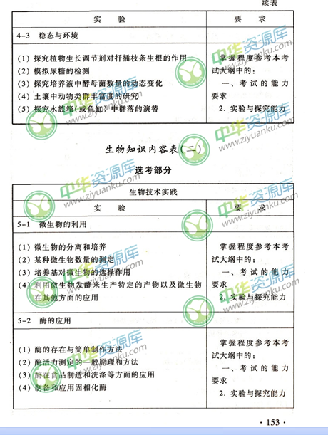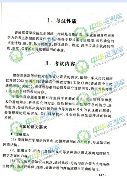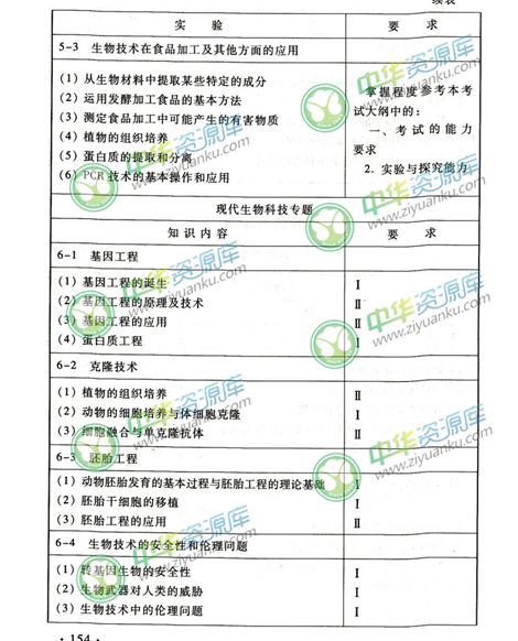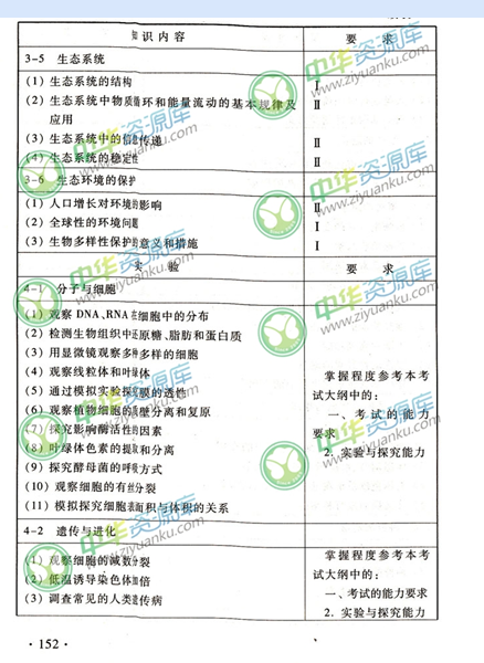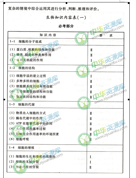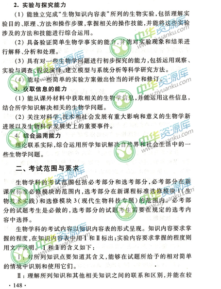 生物考试能力要求