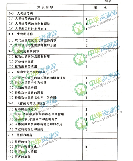 ——>>生物——>>高中学业水平测试(海南页面)——>>生物考试能力要求站
