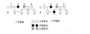 A.仅通过1号家庭系谱图,能判断出甲病和乙病是隐性遗传病