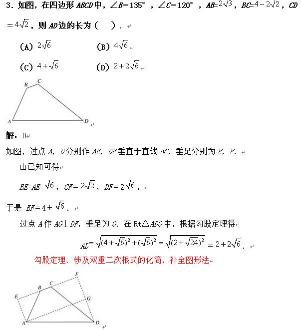 勾股定理、涉及双重二次根式的化简,补全图形法