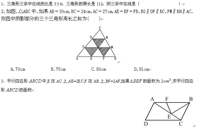 ——>>数学——>>学科竞赛(江苏页面)——>>三角形三条中位线的比是3:5:6,三角形的周长是112,则三条中位线是站