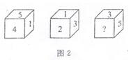 9、如图2,一个正方体的六个面上分别标有数字1,2,3,4,5,6。根据图中三种状态所显示的数字,“?”表示的数字是( )