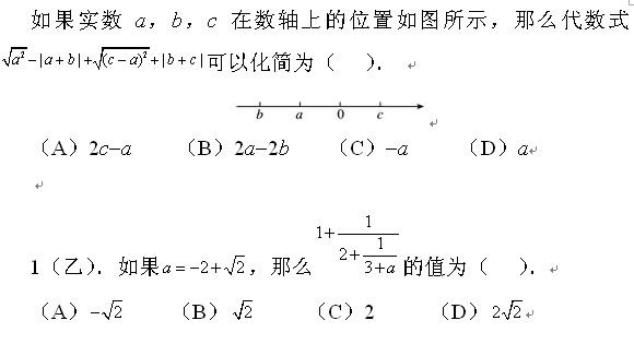 ——>>数学——>>高中学业水平测试(上海页面)——>>如果实数a,b,c在数轴上的位置如图所示,那么代数式站