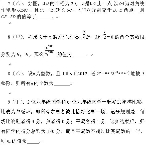 ——>>数学——>>高考(上海页面)——>>2位八年级同学和m位九年级同学一起参加象棋比赛,比赛为单循环,即所有参赛者彼此恰好比赛一场站