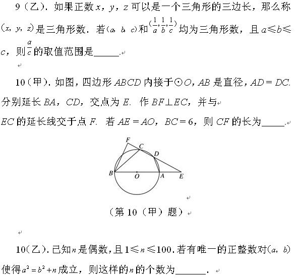 ——>>数学——>>高考(上海页面)——>>如果正数x,y,z可以是一个三角形的三边长站