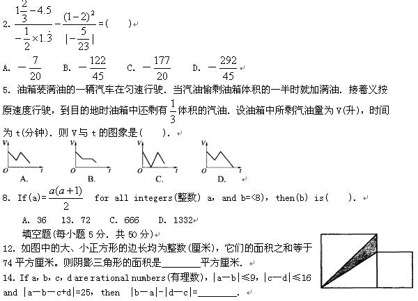 ——>>数学——>>高中同步(北京页面)——>>如图中的大、小正方形的边长均为整数(厘米),它们的面积之和等于74平方厘米。则阴影三角形的面积是站