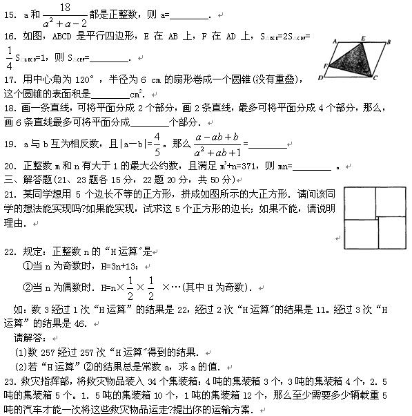 ——>>数学——>>高中同步(北京页面)——>>救灾指挥部,将救灾物品装入34个集装箱:4吨的集装箱3个,3吨的集装箱4个,2.5吨的集装箱5个。1站