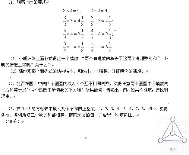 ——>>数学——>>高中同步(北京页面)——>>能否在图4中的四个圆圈内填入4个互不相同的数,使得任意两个圆圈中所填数的平方和等于另外两个圆圈中所填站