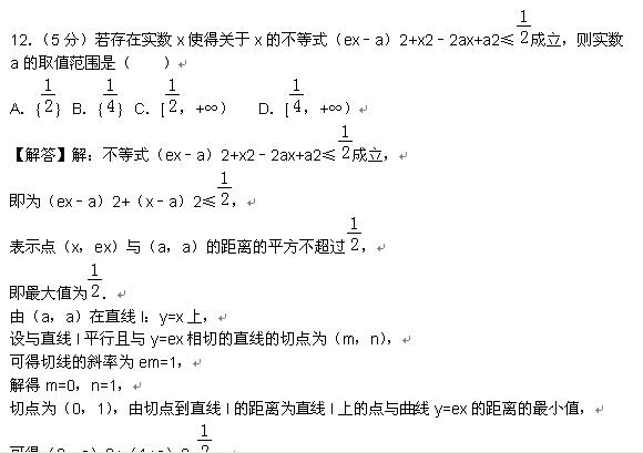 ——>>数学——>>学科竞赛(北京页面)——>>若存在实数x使得关于x的不等式(ex﹣a)2+x2﹣2ax+a2站