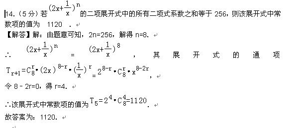 ——>>数学——>>学科竞赛(北京页面)——>>二项展开式中的所有二项式系数之和等于256,则该展开式中常站