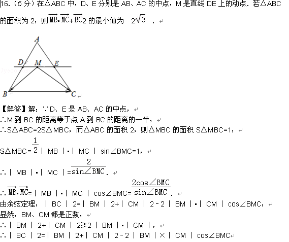 ——>>数学——>>自主招生(北京页面)——>>在△ABC中,D、E分别是AB、AC的中点,M是直线DE上的动点站