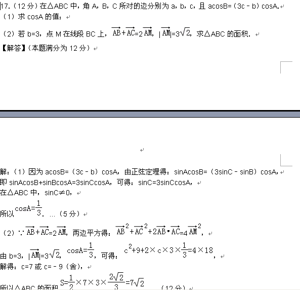 ——>>数学——>>自主招生(北京页面)——>>在△ABC中,角A,B,C所对的边分别为a,b,c,且acosB=(3c﹣b)cosA.站