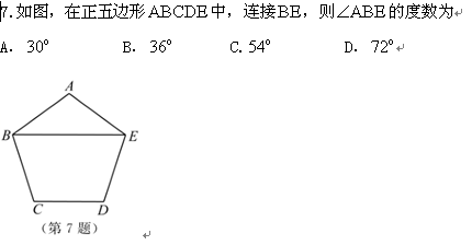 ——>>数学——>>中考(天津页面)——>>如图,在正五边形 中,连接 ,则 的度数为站