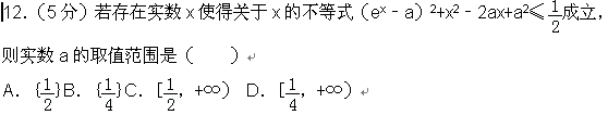 ——>>数学——>>高中同步(天津页面)——>>若存在实数x使得关于x的不等式(ex﹣a)2+x2﹣2ax+a2≤ 成立站