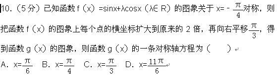 ——>>数学——>>学科竞赛(天津页面)——>>已知函数f(x)=sinx+λcosx(λ∈R)的图象关于x=﹣ 对称,站