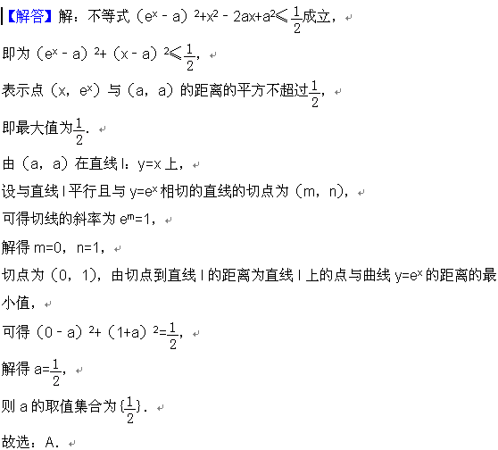 若存在实数x使得关于x的不等式(ex﹣a)2+x2﹣2ax+a2≤ 成立
