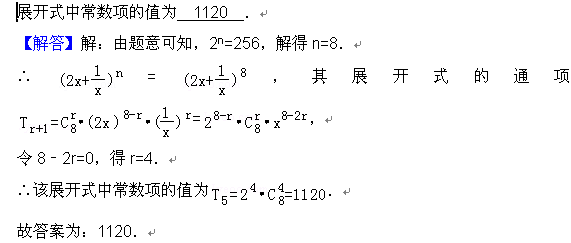 若 的二项展开式中的所有二项式系数之和等于256,则该