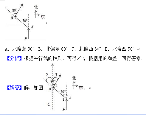 ——>>数学——>>中考(重庆页面)——>>如图,快艇从P处向正北航行到A处时,向左转50°航行到B站