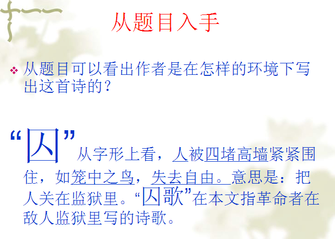 ——>>语文——>>初中同步(天津页面)——>>囚歌ppt课件站
