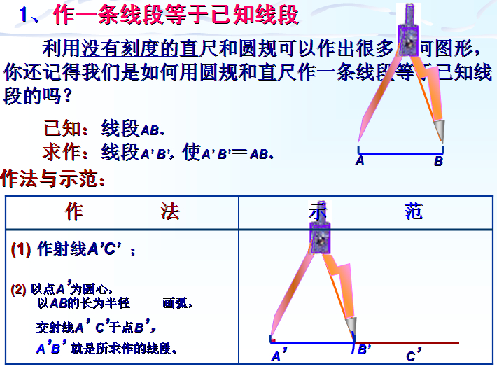 ——>>数学——>>初中同步(湖南页面)——>>2-4-1用尺规作线段和角ppt课件站