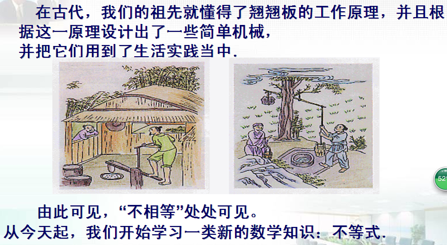 ——>>数学——>>初中同步(福建页面)——>>8-1认识不等式ppt课件站