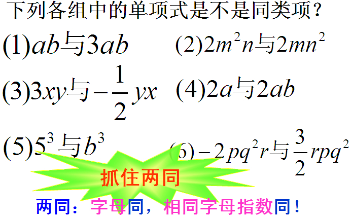 ——>>数学——>>初中同步(贵州页面)——>>2-4-1合并同类项ppt课件站