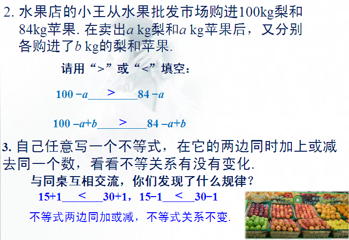 ——>>数学——>>初中同步(新疆页面)——>>1-2不等式的基本性质ppt课件站