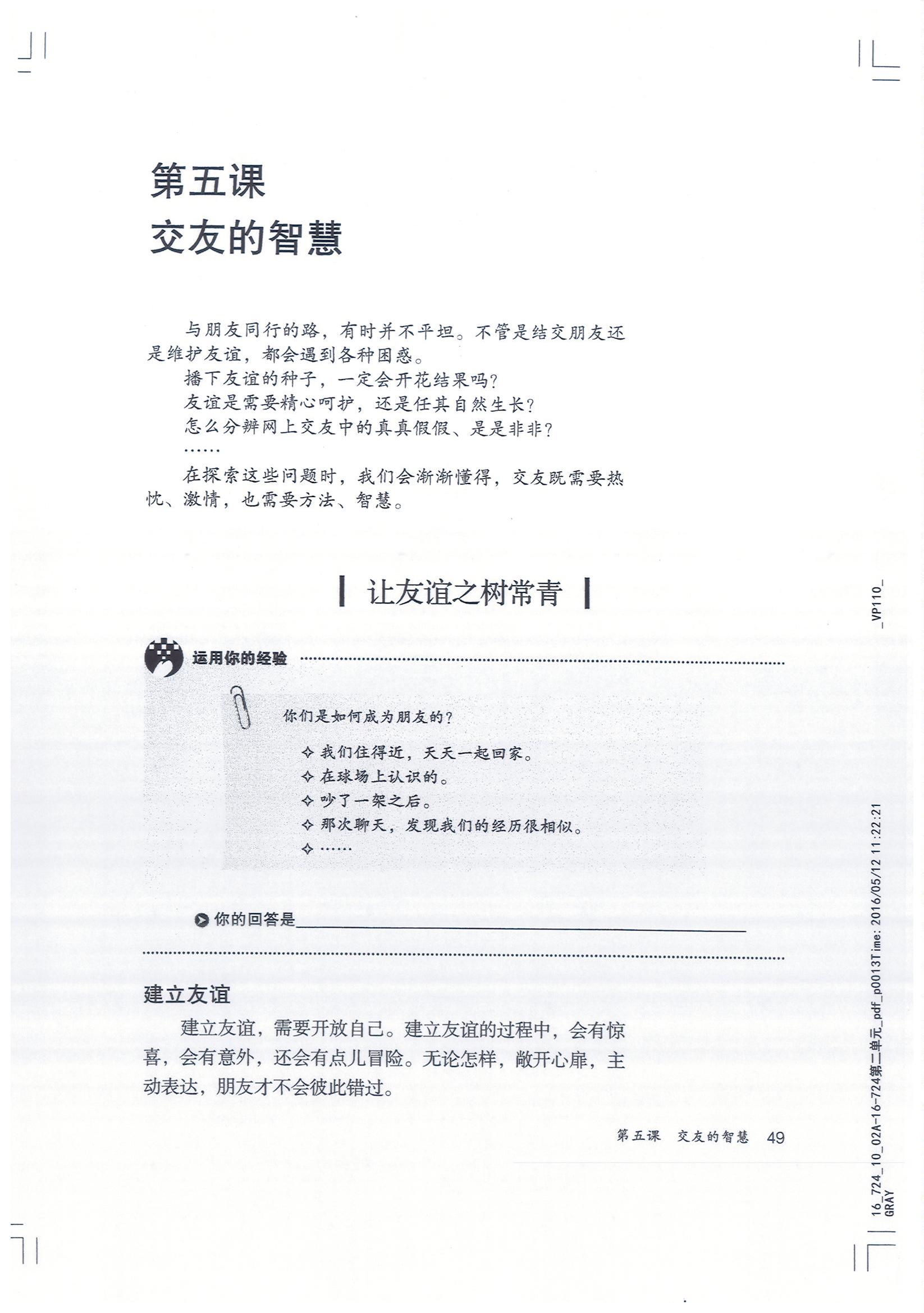 ——>>政治——>>初中同步(湖北页面)——>>7上第五课 交友的智慧 让友谊之树常青站