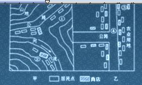 9.读某聚落分布示意图,图中四地最有可能发展成为商业中心的是(D)