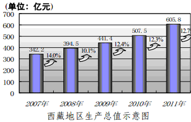 高山之宗,江河之源,神圣之地,歌舞之乡……位于世界屋脊的西藏,是发展的西藏,美丽的西藏,幸福的西藏。回答8~10题。