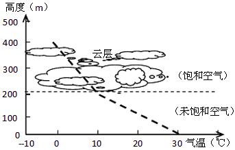 近地面气流持续上升,最终会冷却至它的凝结温度。其气温变化如图折线所示。完成7~8题。