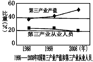 29. H国第三产业出现如图所示特点的可能原因是,该产业